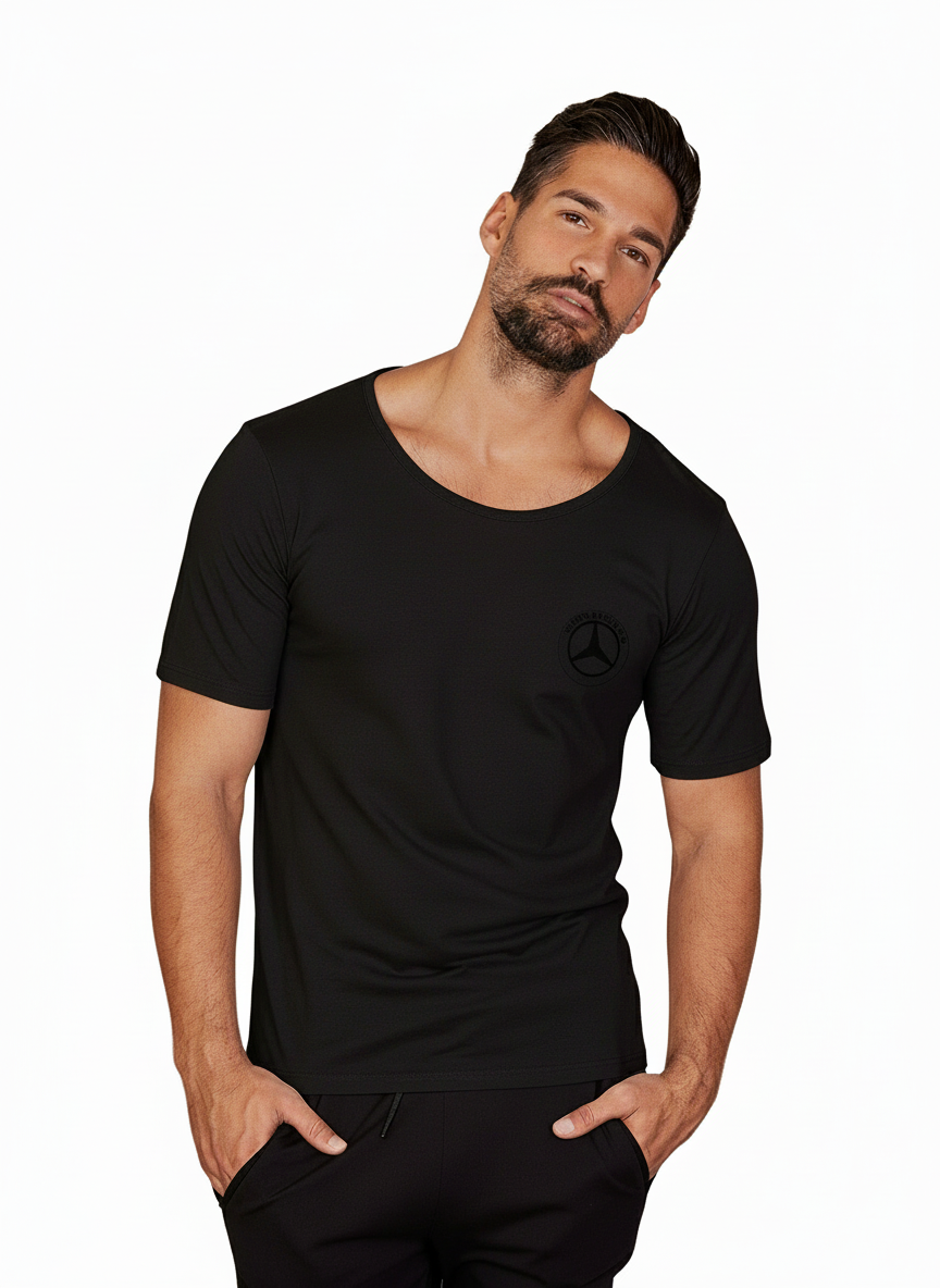 Férfi kereknyakú pamut póló – fekete Ez a modern, fekete férfi póló a kényelmet és...