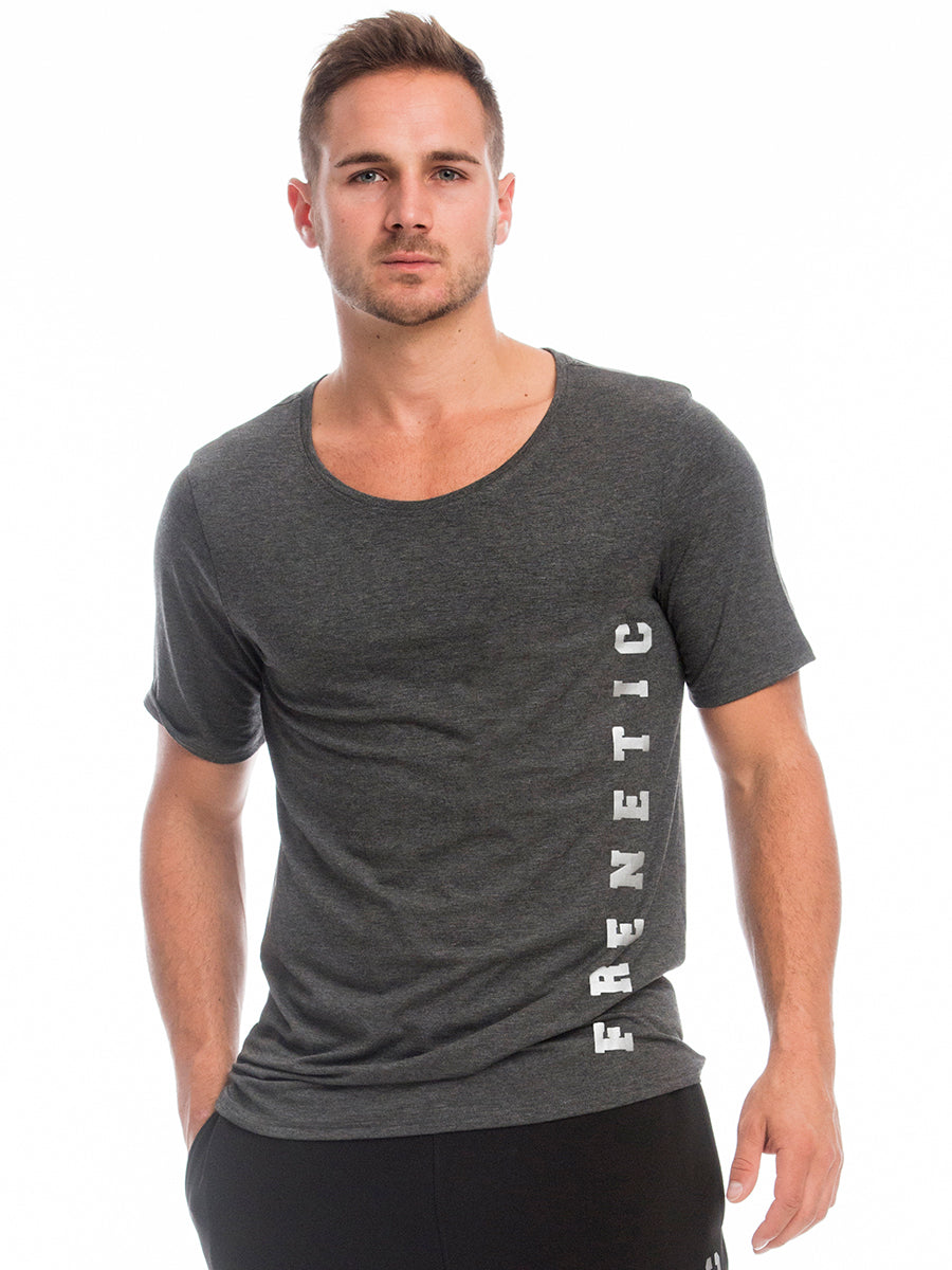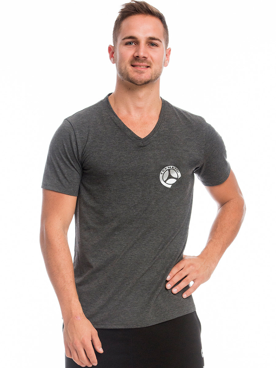 Férfi V-nyakú pamut póló – sötétszürke melír Ez a stílusos, sötétszürke férfi póló tökéletes választás...
