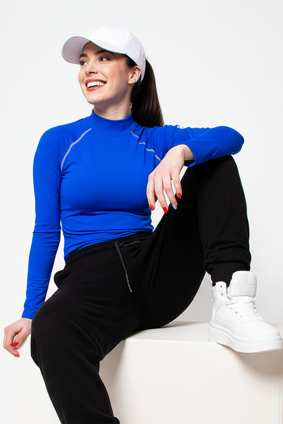 Comfort, functionality? This beautiful royal blue women's long-sleeved sports top with a slightly raised neck...