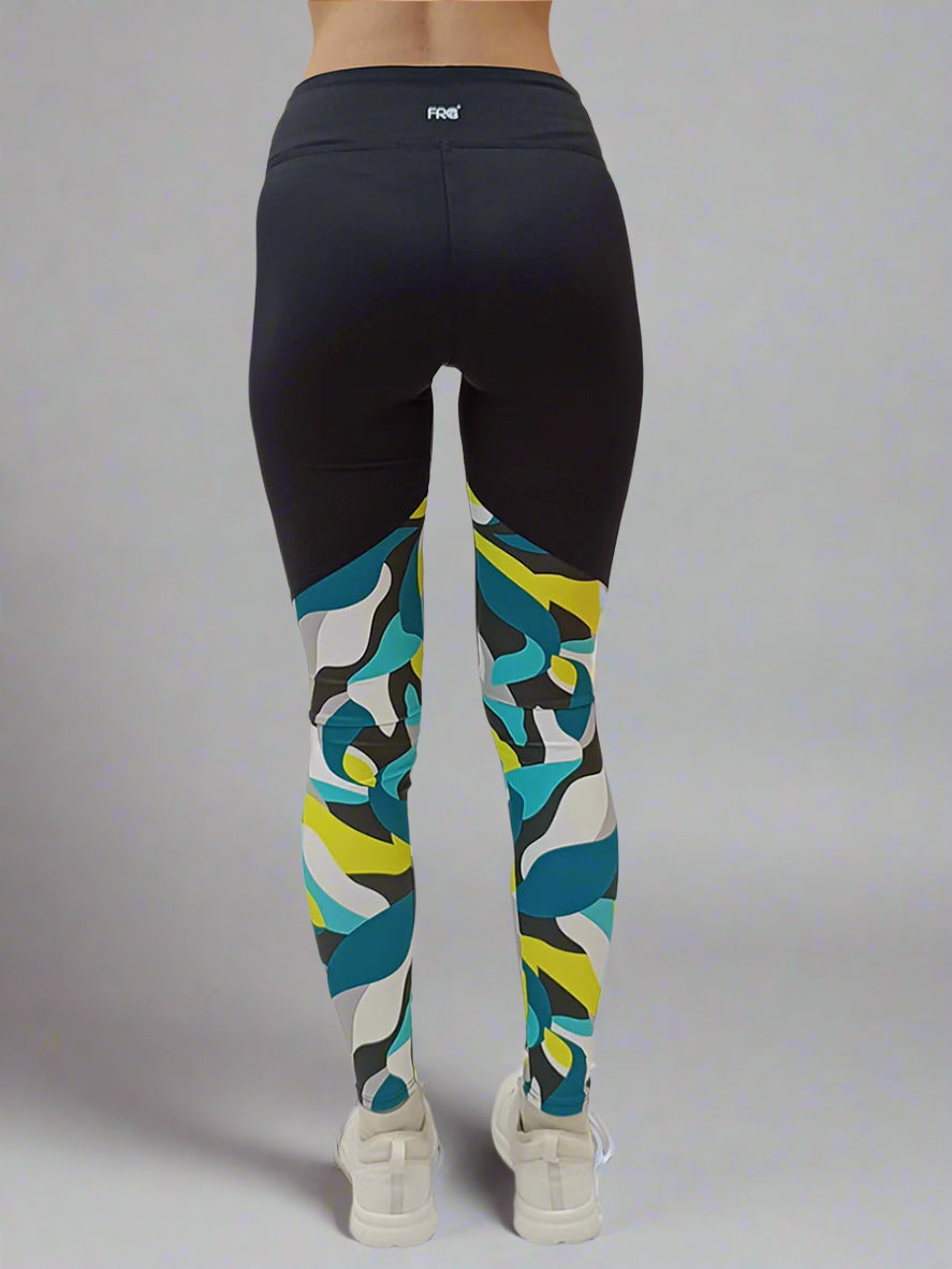 Színes betétes, magas derekú, elasztikus női fitness leggings.