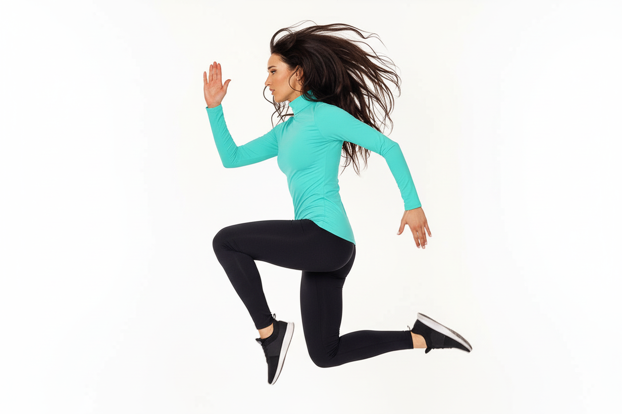 HEATER is a light turquoise turtleneck long-sleeved classic women's top, slim FIT cut ensures complete freedom of movement. It can also be worn as a casual, sporty street look, in addition to being your loyal companion during all high-intensity sports. Its light and soft polyamide material gently adapts to your body. It is made of an exceptionally color- and shape-retaining material, which retains these properties throughout its entire life. The turtleneck is an excellent choice for colder periods, as it protects from the cold and looks elegant on its own or even under a jacket. It can be worn with casual and formal outfits.