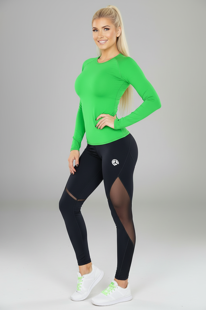 Black, long-sleeved, round-neck women's sports top. The material is pleasant and breathable, ensuring the body's natural evaporation, so we also recommend it as an undergarment.
