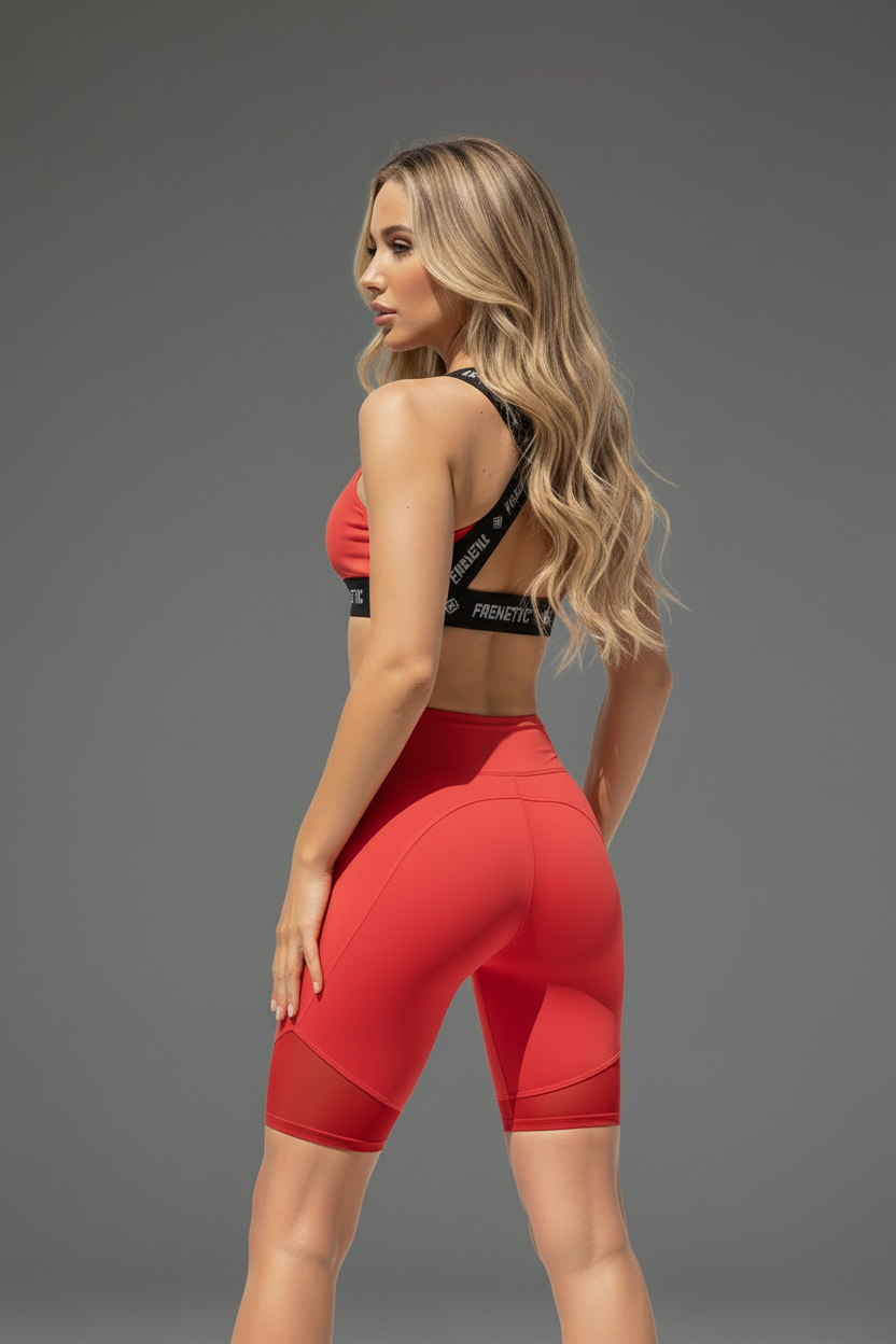Red, high-waisted women's shorts with a fishnet insert at the bottom for the sweltering hot days of summer.