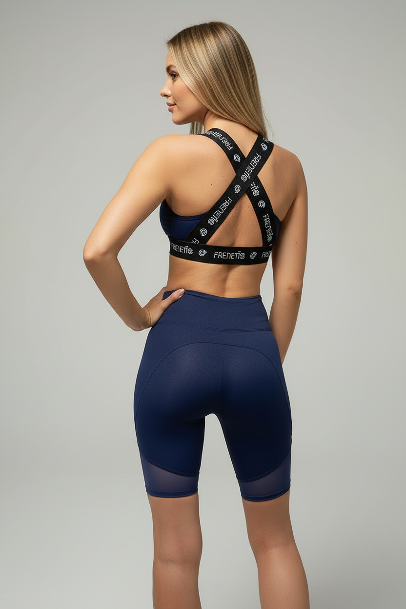 OZZY-45 women's fitness shorts with navy tulle inserts