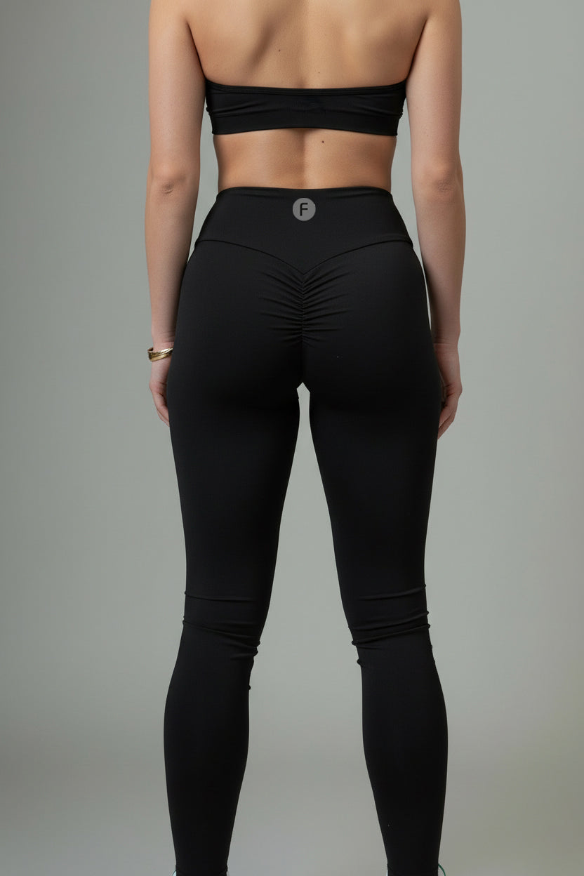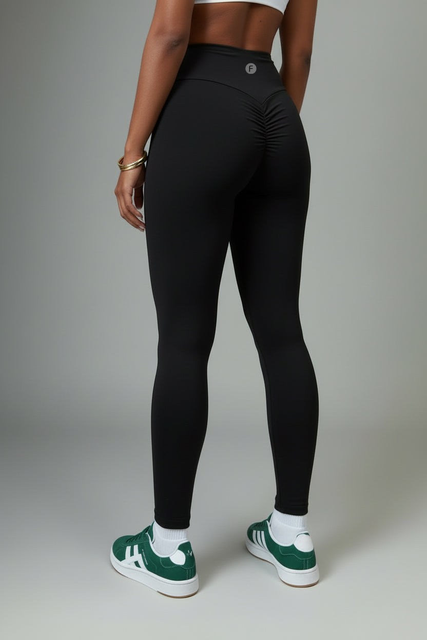 SIENNA-01 black, wrinkled bottom sports leggings
