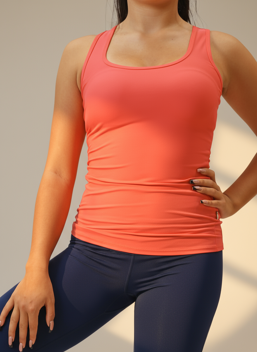 Női sportos atléta – birkózóhátas fazon, kellemes sötét korall színű
