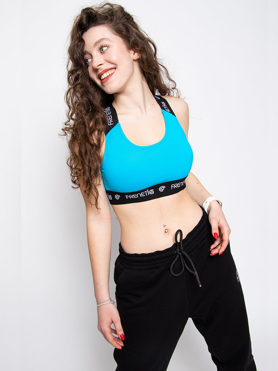 Türkizkék frenetic-sportgumis női sportmelltartónkban megtalálod a FRENETIC termékek három legfontosabb ismérvét : egyediség, kényelem és funkcionalitás. Kell ennél több? Mellérsze szivacsbetétes, melyek formálják és összetartják idomaid még a legintenzívebb sportok végzésénél is. Egyedi Frenetic sportgumi látható a mell alatti résznél és a keresztpántoknál. Prémium termékeimben igazán egyedinek érezheted magad. . KÉNYELMES anyag, bőrbarát EXCELENT COVERAGE – kiváló minőségének köszönhetően NEM átlátszó LÉGÁTERESZTŐ – a szövetek elnyelik az izzadságot és lehetővé teszi a természetes párolgást