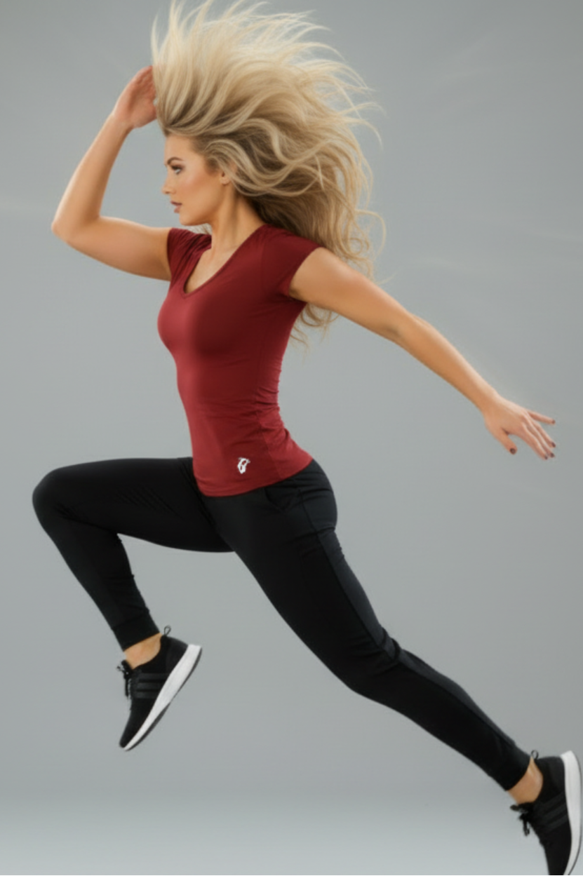 Bordó színű női rövid ujjú, sport póló, elején kis fehér logóval. Kényelmes fazon a hétköznapokra farmerral, puha tapintású anyagból készült. Anyagának köszönhetően kiválóan alkalmas kültéri futáshoz is vagy csupán egy otthoni tartalmas pihenéshez!