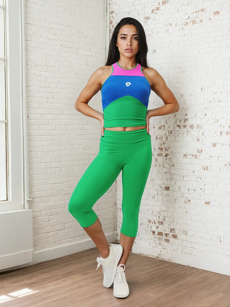 WENDY-43 crop női felső, királykék-zöld-pimk betétekkel