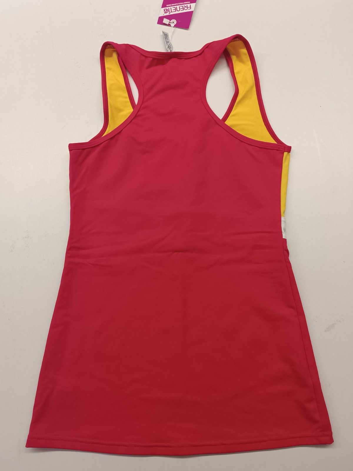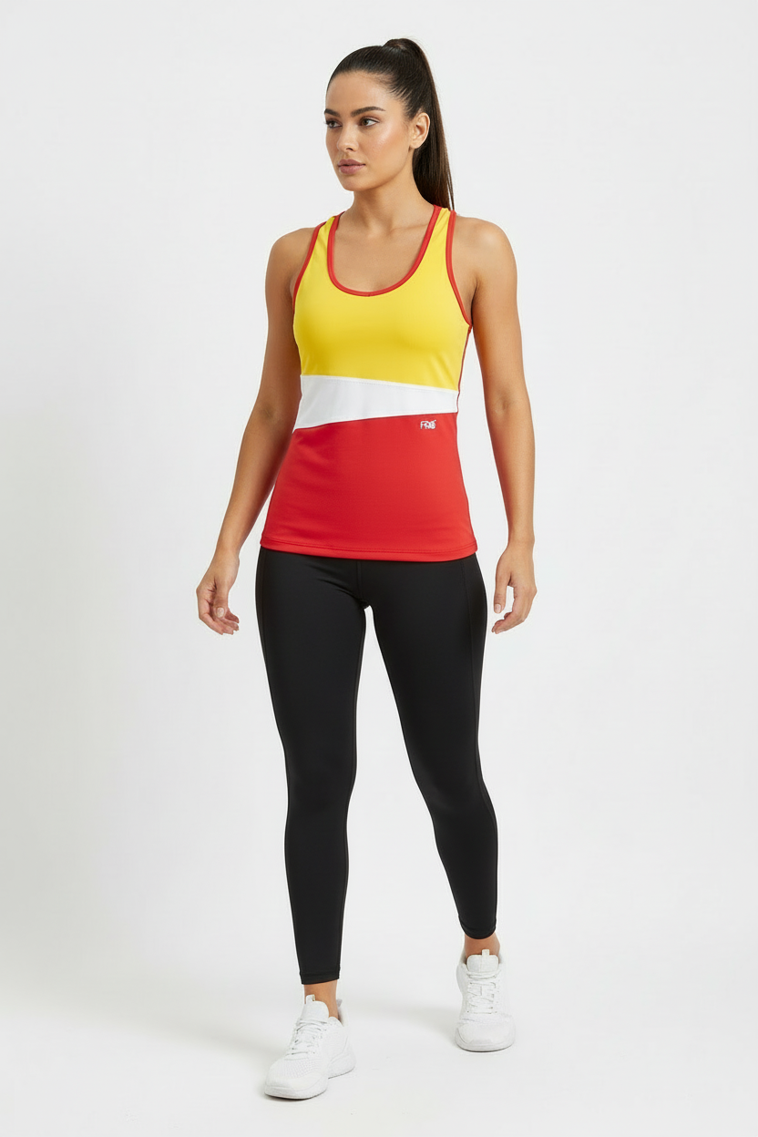 Ez a modern, színblokkolt női sportfelső tökéletes választás edzéshez és aktív mindennapokra. A testhezálló fazon kiemeli az alakot, miközben maximális mozgásszabadságot biztosít. Az ujjatlan kialakítás és a sportos hátrész ideálissá teszi intenzív mozgáshoz is.