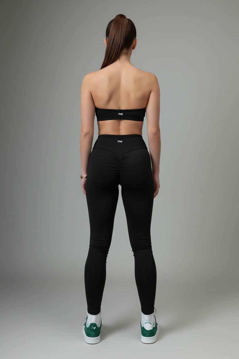 Emeld új szintre az edzéseidet ezzel a tökéletesen alakformáló, magas derekú fekete leggings-szel! A különleges scrunch (redőzött) varrás a fenék közepén optikailag emeli és kerekebbé teszi a popsit, kiemelve a nőies vonalakat, miközben maximális komfortot biztosít.