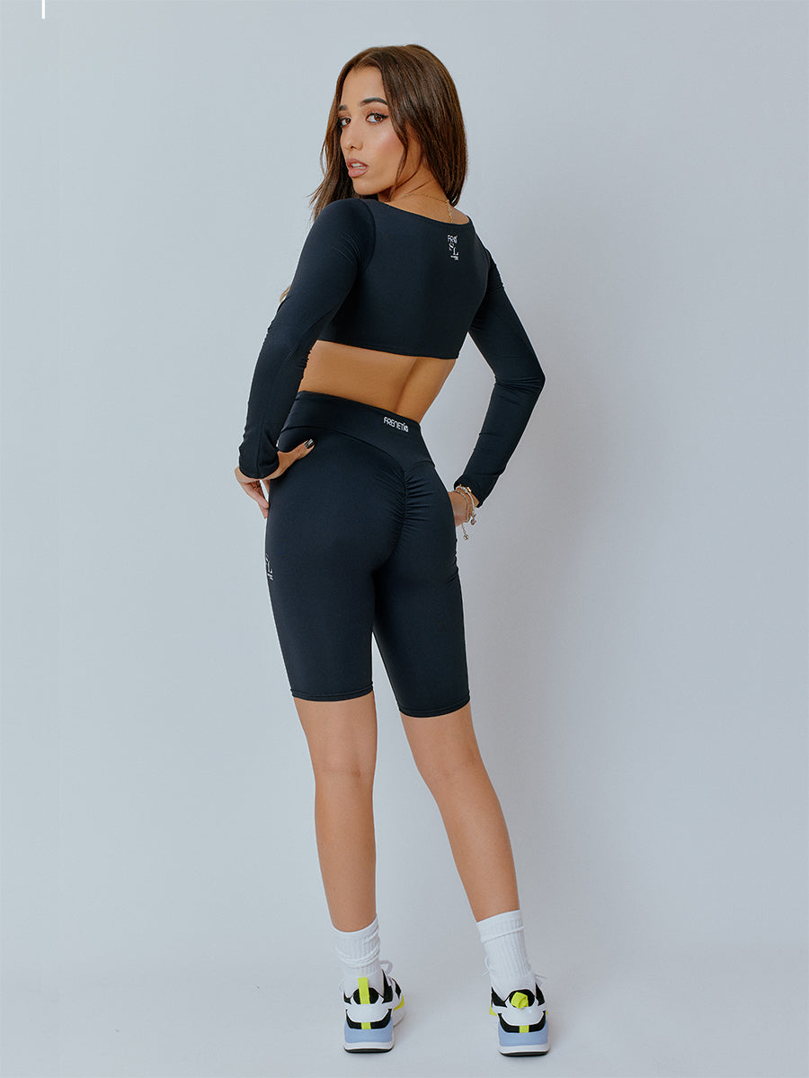 A fekete színű, combközépig érő rövidnadrág ideális rendszeres, alacsony és magas intenzitású tornázáshoz és nyújtáshoz. Egyenes szabásvonal, megfelelő hossz,hátulján feneket formáló varrással: jól látható izommunka.Dereka extra magas fazonú, így futás vagy biciklizés közben maximális kényelmes nyújt Neked. Anyaga légáteresztő, antibakteriális, mely sport közben biztosítja bőröd számára a szabad légzést.