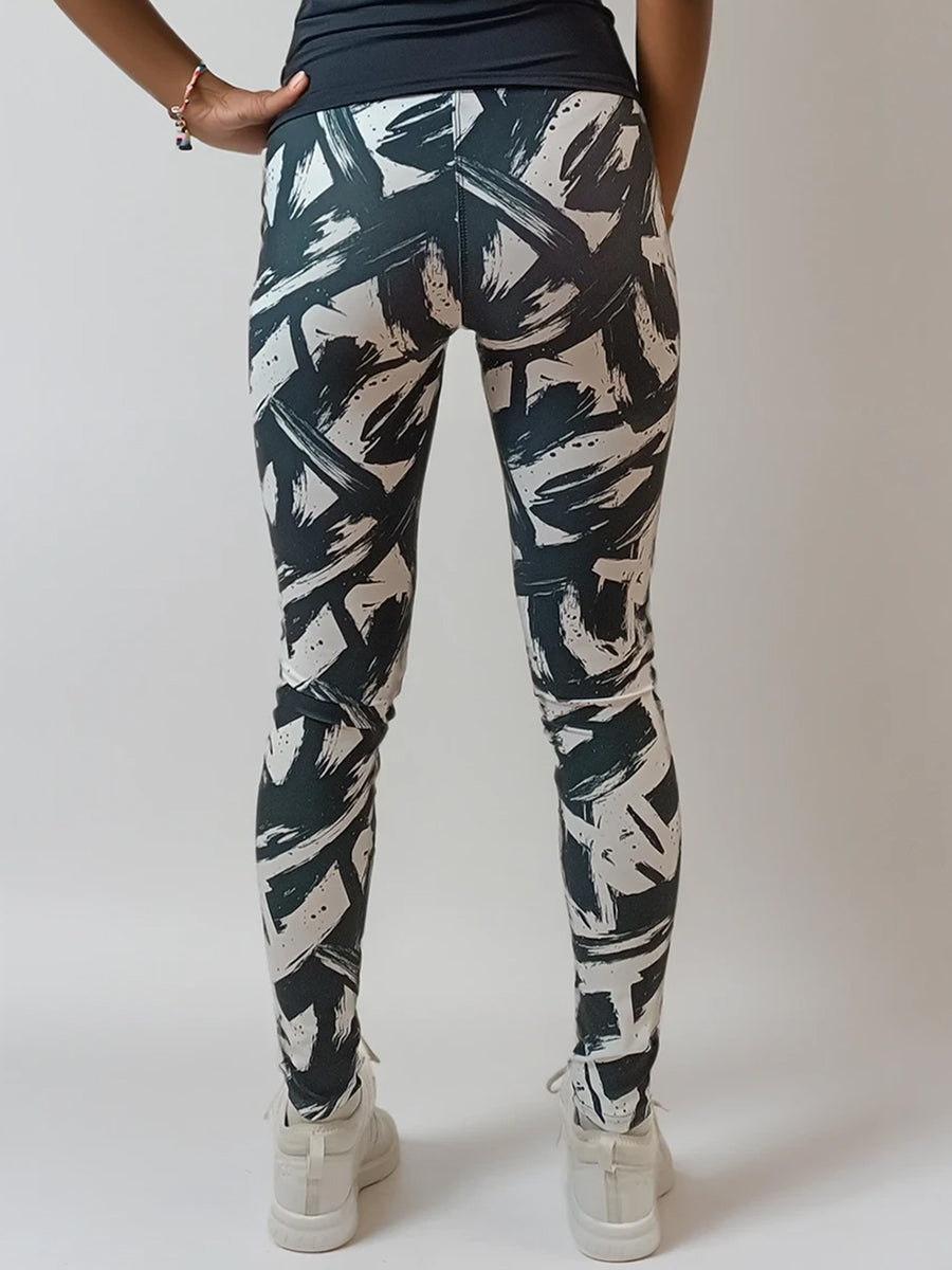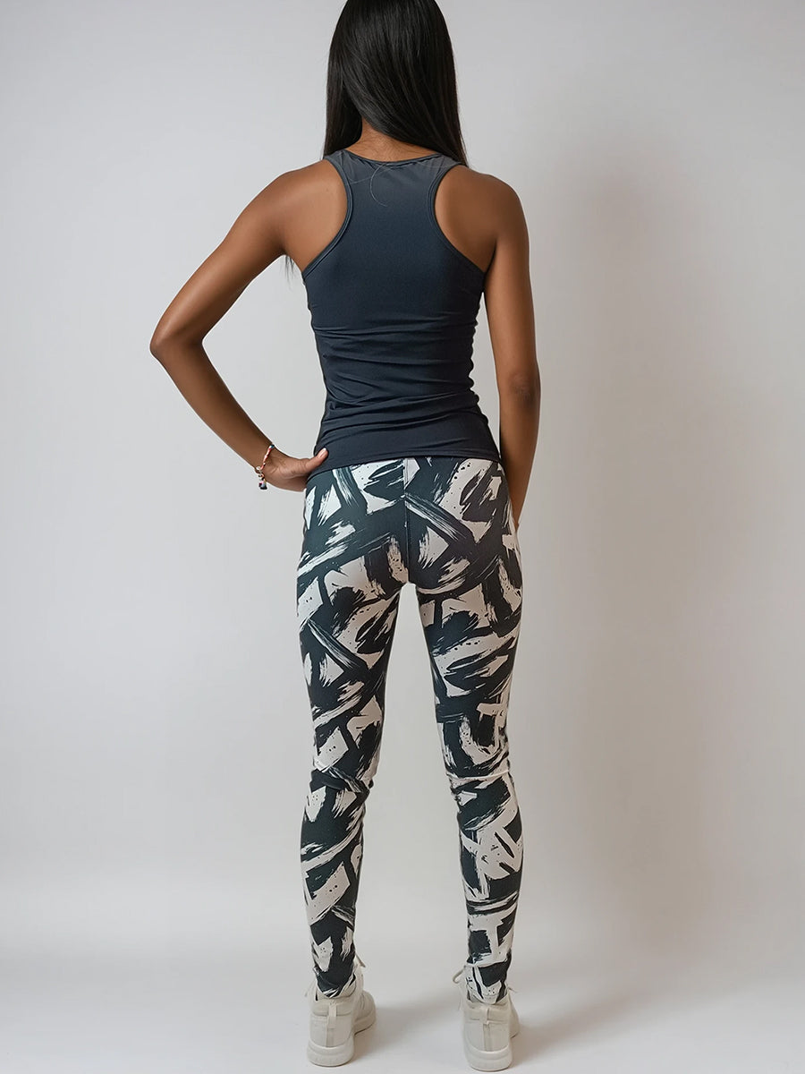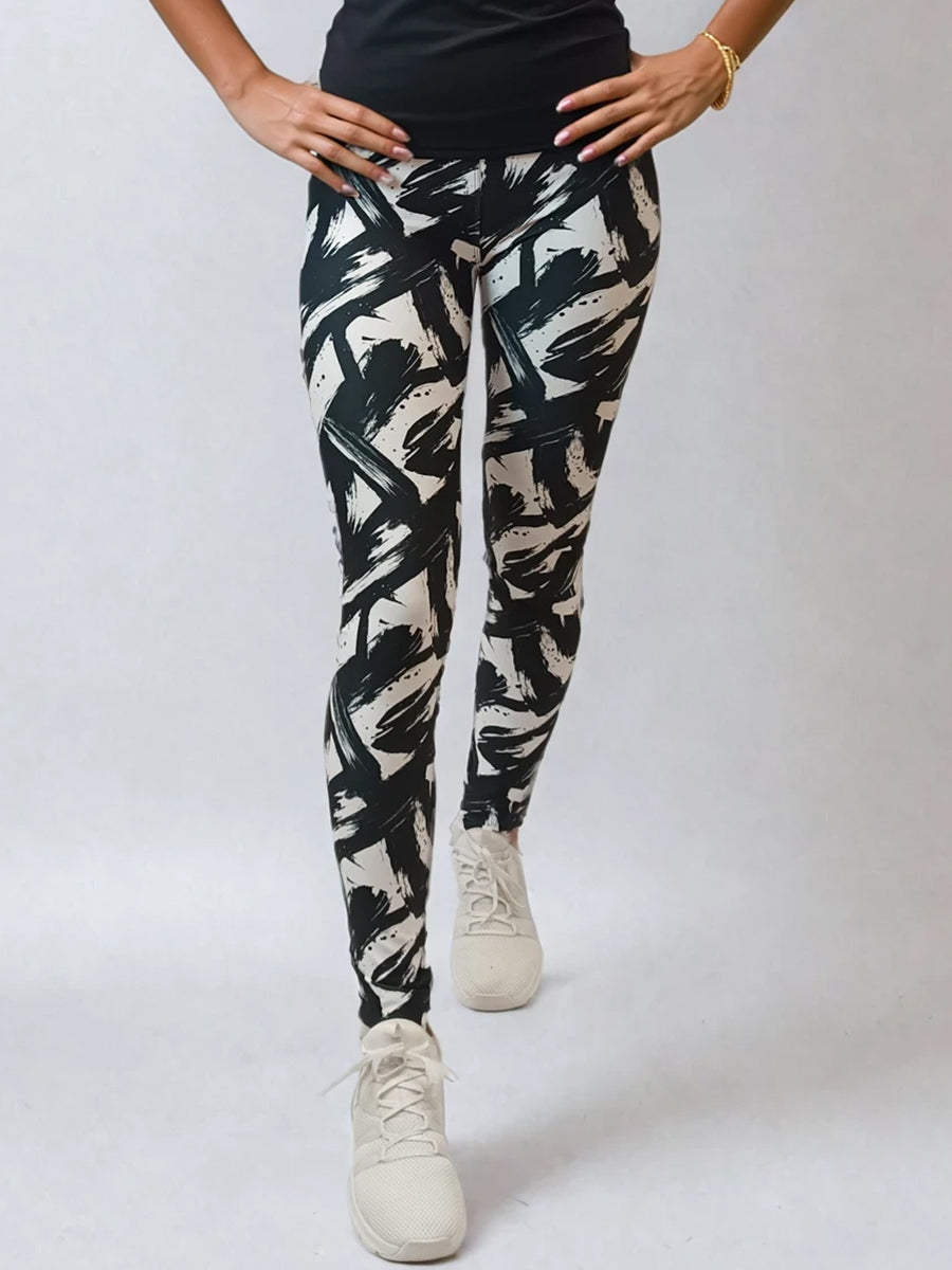 🖤 Női fitness leggings – „Brushstroke” fekete-fehér mintával