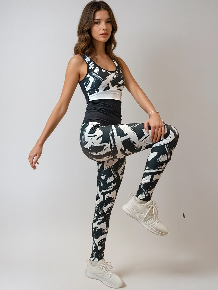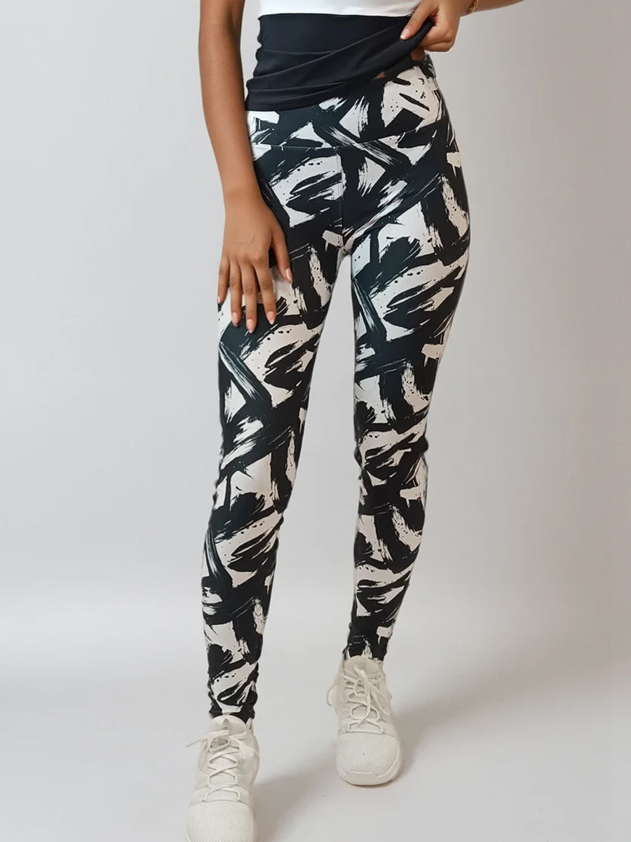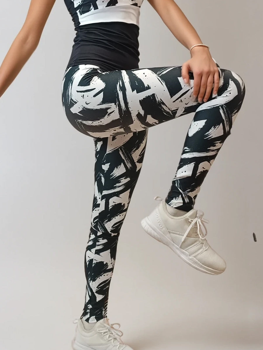 🖤 Női fitness leggings – „Brushstroke” fekete-fehér mintával