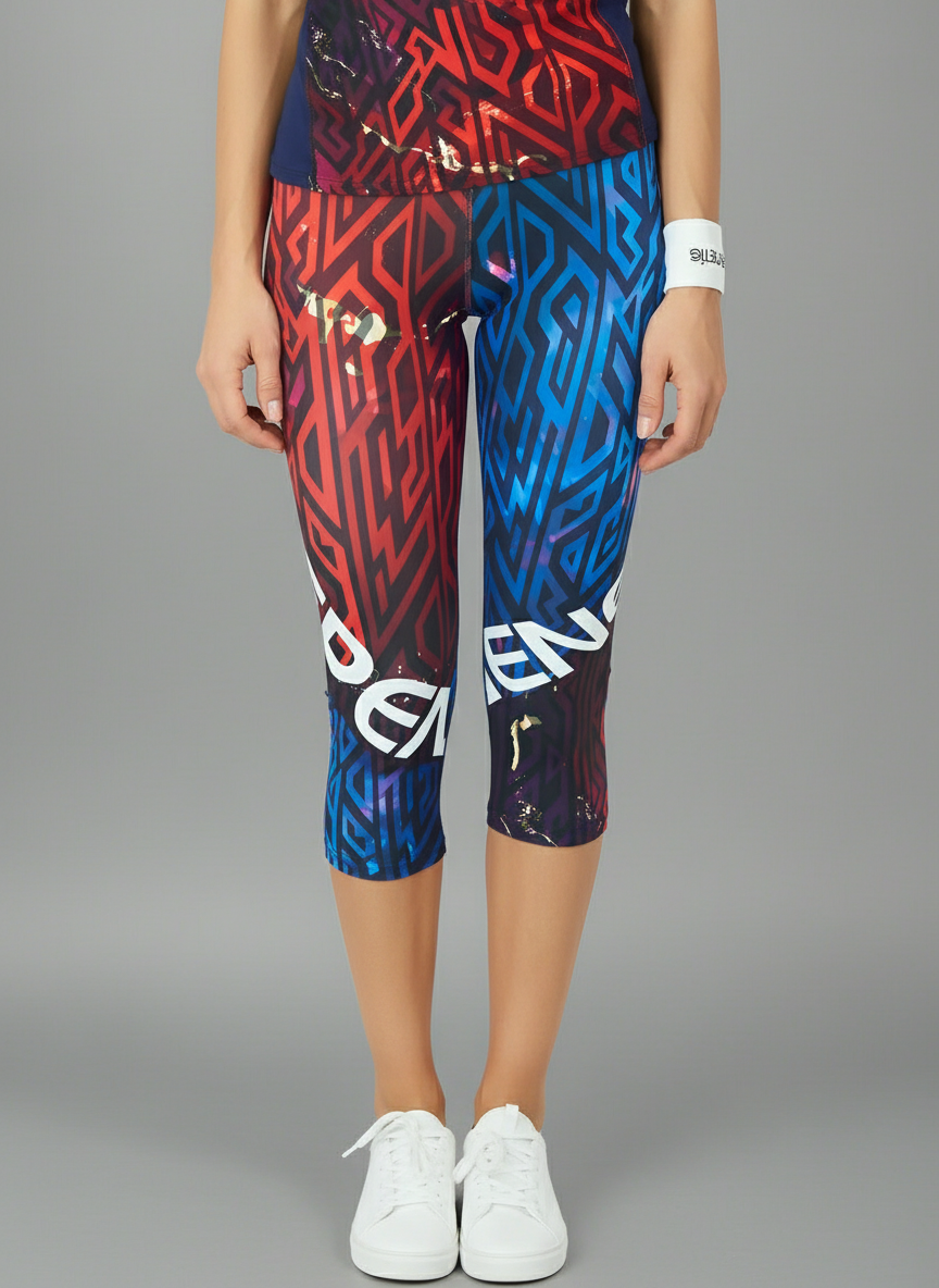 Fitness legíny s vysokým pásom v jedinečných farbách a asymetrickej grafike.