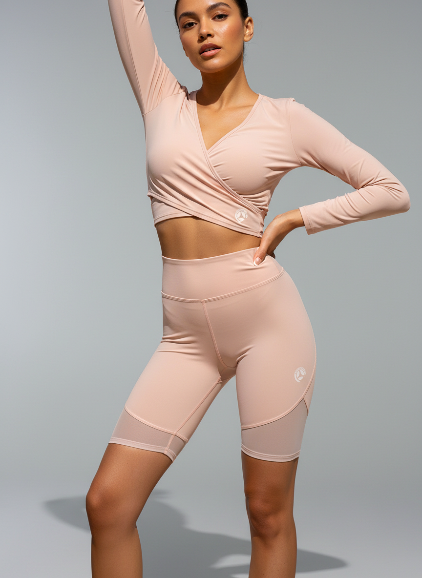 Halávny ružové dámske šortky s vysokým pásom a sieťovanou vsadkou naspodu na sparné horúce letné dni.